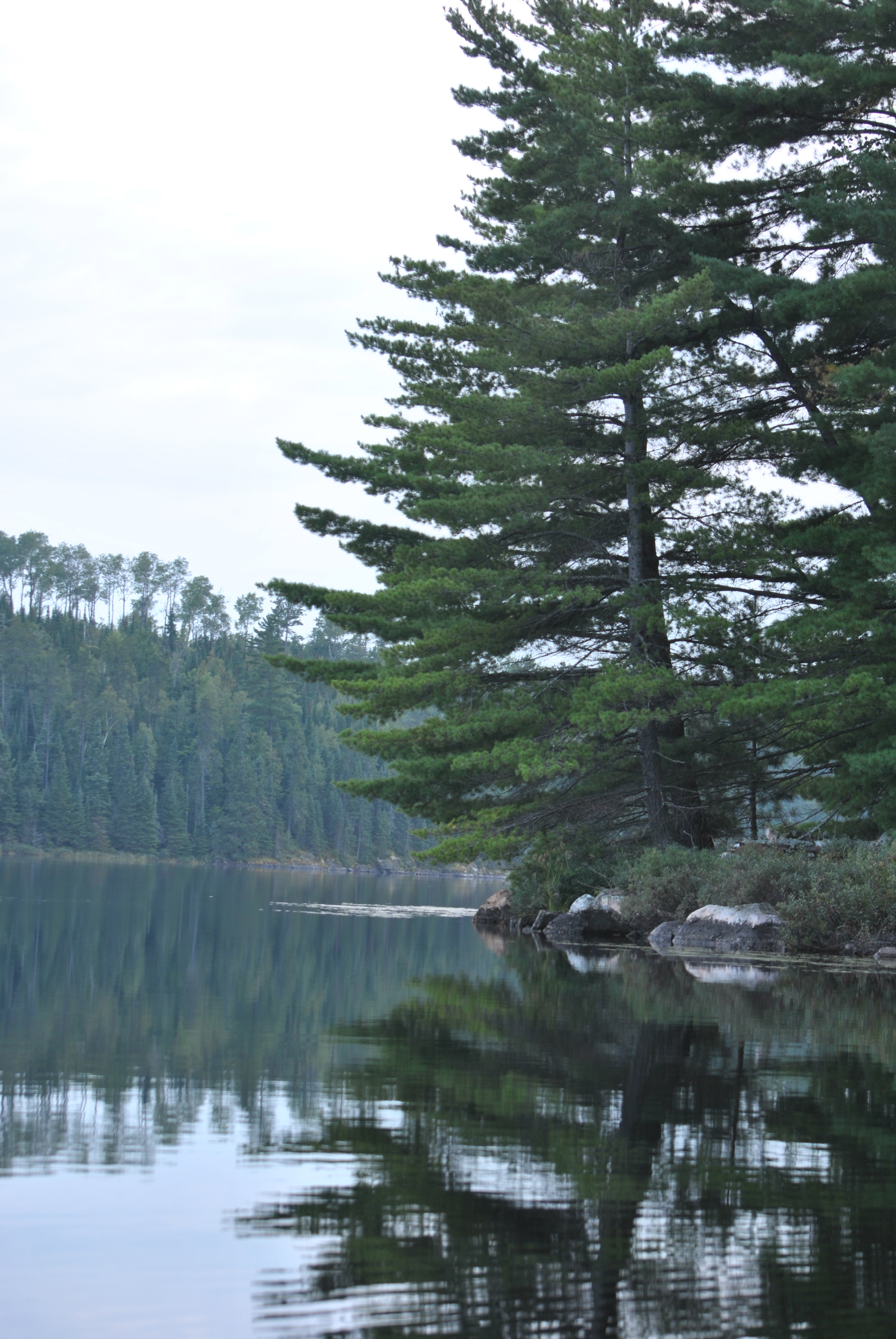 We all got out and walked around, but the firepit was secluded from the water, and the path to the toilet was very rocky. It didn’t have that magical feel to it, so we paddled back north to one of the (hopefully still open) sites. On our way back towards site 675 we noticed a flotilla of four canoes (the ones we saw at Rockwood) with loaded gear also looking for a site. The race was on!