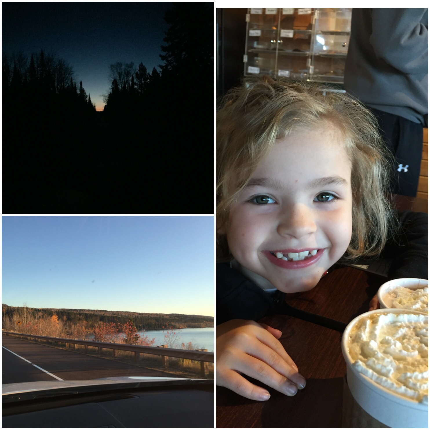 The alarm went off at 5:30 a.m. and I was ready to roll! Mr.MN scooped MiniMN out of her slumber, and carried her to the car and we were finally off! It was still mostly dark , but we got to watch the sun rise over Lake Superior which is always a treat.